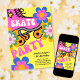 Prepare-se para voltar a tempo com o nosso convite de festas de patinação do rolo! Lace seus skates e convide amigos para uma comemoração de aniversário cheia de vibrações divertidas, risadas e groovy. Este design nostálgico define o palco para uma parte memorável sobre rodas. Coloque o seu alicerce e o skate de vamos numa fantástica festa de aniversário!
