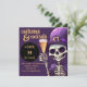 Quer você esteja planejando uma reunião íntima de amigos próximos ou uma grande festa de Halloween este ano, este Convite à Festa de Skeleton Halloween Spooky define a palco de uma noite inesquecível de folia e prazer. Levante seu copo até os espíritos da noite e convoce seu mais próximo e querido para se juntar a você para uma celebração que certamente será lembrada! uma mistura de macabro e sofisticação que estabelece a palco para uma celebração inesquecível. Contra um pano de fundo de roxo, reminiscente de uma noite iluminada pela lua, surge uma figura esquelética, segurando um copo de vinho na mão — um aceno para as delícias fantasmas que aguardam seus convidados. Este convite à fantasia e coquetéis de Halloween não é apenas um anúncio comum; é um portal para um mundo de mistério e alegria. A presença do esqueleto adiciona um ar de sofisticação assustadora, enquanto o copo de vinho dá pistas aos cocktails e espíritos tantalizantes que fluirão livremente ao longo da noite. É um convite que promete uma noite de emoções e indulgência, perfeito para aqueles que se admiram na magia do Halloween. O esqueleto está vestindo um chapéu roxo profundo e casaco e está vestido para a noite. Aproveite sua festa assombrada!