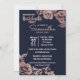 Flores de ouro rosa e tipografia elegantes, quic e simples e modernas imprimem flores e tipografia em marinho azul, em voga, convites para Festas de solteira. Este design clássico e sofisticado é perfeito para a classe, a moda e a na moda. Personalize com sua própria mensagem na frente e um monograma personalizado na parte de trás. Todas as impressão de fotos.