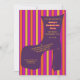 Jogue uma festa de solteira temática na discoteca de ranhura com este convite divertido que apresenta um calçado de discoteca de estilo retrô em um cenário roxo contra um fundo claramente riscado com um impressão de disco geométrico de coordenação no verso.