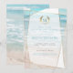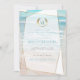 Convite para Festa de Solteira | Casamento de Praia Geométrico com Monograma Moderno | Um toque moderno nos convites de casamento de praia - Convite de casamento único projetado para a NoivaDescalça™ pela ©ArteCaprichosa™ apresenta uma forma geométrica em estilo de terrário deslocado com transparências variadas nas facetas para permitir que o fundo da Praia Tropical do Oceano seja exibido em uma variedade de formas e intensidades. Uma abordagem lúdica da tipografia no texto - com as iniciais do nome da Noiva e do Noivo cercadas por uma coroa de louros no topo - em duas cores (turquesa e dourado) - seguida por fontes serifadas coordenadas em verde azulado suave (escolhido a partir do oceano) turquesa (escolhido a partir das ondas do oceano no fundo) e letras douradas. Os detalhes do casamento limpos e simples apenas na frente do convite - um design de praia tropical coordenado no verso. Todo o texto, incluindo estilos de fonte e cores, é
