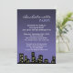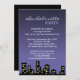 O convite à Festa de solteira da paisagem urbana apresenta uma típica paisagem urbana de como a cidade se parece com as silhuetas de arranha-céus altos iluminadas à noite. Ideal para solteiros ou festas de solteira de noites de pré-casamento. © Manhã 6