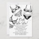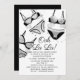 Lingerie Panty Festa de solteira Glitter Invices apresenta sutiãs e calcinhas elegantes, pretas e brancas, com o texto "Ooh La La!" em um roteiro de caligrafia negra moderno com sua lingerie personalizada, sua festa de calça ou informações de chá de panela abaixo. Personalize editando o texto nas caixas de texto fornecidas. Criado por ©Evco Studio www.zazzle.com/store/evcostudio