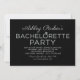 Convites de festa de solteira de casamento modernos e na moda apresentam um título impressionante de cinza de platina que é personalizado com o nome da noiva e um anel de noivado de diamante. A cor de fundo é preta. Personalize o texto com os detalhes da noite de saída das suas meninas.