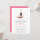 Convite de Festa de solteira de cor d'água da Tendy, com uma garrafa de champanhe, óculos e flores de peônia personalizáveis de acordo com as suas especificações de evento.