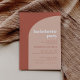 Convite para festa de solteira. Minimalista, porém impressionante: adote este design tipográfico ligeiramente retrorreflector para a sua papelaria de casamento, com um design de arco moderno e terracotta e cores laranja queimadas. Texto, cores e fundo totalmente personalizáveis.