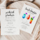Convite à festa de solteira divertida para um evento de destino com ilustração de bebidas coquetéis tropicais coloridas.