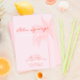 Mínimo convite de fim de semana rosa para solteiros desenhado para festas de solteira de destino de praia ou Palm Primaveras/fins de semana com itinerário no verso. Imagem de fundo de Freepik.