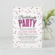 Um cheio design de convite para na moda de festa de solteira com uma imagem de bugigangas e as palavras "Festa de solteira" com estilos com a palavra "Partido", cheios de uma imagem de brilho rosa quente. Observe que este design não apresenta brilho real; é uma imagem de brilho. Este é um design impresso plano. Não há embelezamentos.