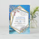 Uma cena de Natal de inverno Azul com um quadro de ouro geométrico é fácil de personalizar com sua redação, fonte, cor de fonte, forma de papel e escolha de doze tipos de papel para uma festa de todas as garotas