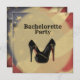 Venha brindar à Noiva com saltos altos e pretos e toda a informação para o seu evento na parte de trás deste angustiado convite à bandeira americana.