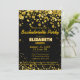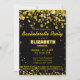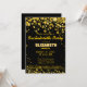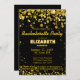 Convite moderno e elegante para festas de solteira com ouro escuro rico brilhando brilho de confete em um fundo preto.Você pode personalizar o texto facilmente para qualquer ocasião, se quiser. Você também pode alterar a cor de fundo. Design por Amelia Carrie para zazzle.com/GlitterInvitations