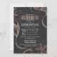 Desenhos florais de rosa de ouro elegantes, modernos e em forma de chic impressos em convites a preto e Festa de solteira. Este design clássico e sofisticado é perfeito para a classe, a moda e a na moda. Personalize com sua própria mensagem na frente e um monograma personalizado na parte de trás. Todas as impressão design.