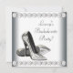 Diamantes brancos elegantes, preto e branco salto alto, modelo de convite para festa de solteira. Adicione seus detalhes à frente e atrás deste belo convite de festa de solteira preto e branco, simplesmente escolhendo o botão "Personalizar!" para começar a adicionar os detalhes do evento, estilo da fonte, tamanho da fonte e cor e texto. Observe que todos os designs de convite que você encontrará no Zazzle são gráficos impressos em estoque de papel plano sem joias reais, arcos, levantados, gravados em relevo ou peças ou peças adicionadas.