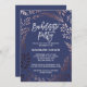 Este elegante cartão de convite para festas de solteira rosa e marinhos é perfeito para um evento clássico. O design apresenta uma impressionante moldura rosa-pincelada num fundo azul escuro e é emparelhado com uma fonte encantadora e cursiva. Nota: Este design não apresenta folha de ouro rosa real. É um gráfico de alta qualidade feito para se parecer com ouro rosa brilhante.