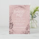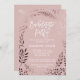 Este elegante cartão de convite para rosa e festa de solteira cor-de-rosa é perfeito para um evento clássico. O design apresenta uma impressionante estrutura de folha de folhas de folha de rosa dourada falso num fundo cor-de-rosa pincelado e é emparelhado com uma fonte encantadora e cursiva. Nota: Este design não apresenta folha de ouro rosa real. É um gráfico de alta qualidade feito para se parecer com ouro rosa brilhante.