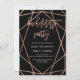 Este convite de festas de solteira elegante e de tendências apresenta um design geométrico de ouro rosa, moderno e sujo, num fundo preto dramático.