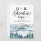 Uma aventura da floresta aquática sempre verde convite de festa de solteira com uma aventura começa como tema. Tipografia de script de caligrafia.