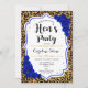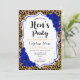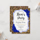 Design elegante em azul real e branco com brilho dourado falso e impressão de leopardo. Apresenta rosas azuis safira e fonte de letra trendy. Perfeito para uma festa elegante. Mensagem-me se precisar de mais personalização.