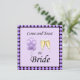 Venha brindar à noiva com balões de Lavanda e óculos de champanhe na frente. Balões e todas as informações para o seu evento no verso deste bonito convite roxo.