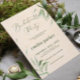 Este é um design de convite para festa de solteira de na moda com folhagem verde empoeirada em uma textura de artesanato bege com tipografia elegante personalizável em verde escuro. É um design sofisticado e elegante que você pode editar texto, imagens e fontes. Esta design evoca uma sensação orgânica e uma simples elegância.