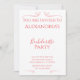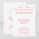 Este é um design de convite Festa de solteira mínimo e moderno. Ele está na tendência da tipografia / texto vermelho/ rosa. Na frente diz: "Você é Convidado para a Festa de solteira de Alexandria", com informações sobre a data, local e detalhes de RSVP abaixo. O texto é enquadrado por corações de na moda. Esta design elegante e moderna é perfeita para a sua celebração Festa de solteira. Basta digitar seus detalhes, nome da noiva, data, local e informações de RSVP, na caixa de texto personalizar este texto. Aqui você também pode mudar o resto do texto se quiser. Para alterar a cor ou a fonte, dê uma olhada na ferramenta de edição de design. Se precisar de ajuda para personalização ou para um projeto personalizado, entre em contato comigo por meio de bate-papo zazzle ou email: ursuladawnmoon@gmail.com