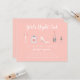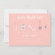 Bonito a rosa, estes convites para festas de solteira são uma maneira divertida de convidar a tripulação da noiva para a Festa Noturna da Menina. Convite cor-de-rosa com vidro martini, garrafa de perfume, salto alto, champanhe e ornamentos de batom - todos os ingredientes para uma boa garota sair à noite. Personalize com os detalhes da noite. O convite reverte para coordenar o padrão de bolinhas rosa e branco.