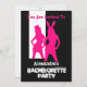 O partido temático personalizado do vestido de fantasia do bachelorette da menina de coelho com os artistas modernos impertinentes flirty da dança do divertimento gráficos no rosa bonito em um fundo liso do preto escuro, personaliza facilmente o nome das noivas aos modelos brancos do texto para criar seu próprio design contemporâneo moderno original para comemorar sua noite impertinente especial do bachelorette do divertimento ou dos partys girl ou das senhoras da galinha para fora no estilo. Este design legal na moda pode facilmente ser personalizado para toda a outro celebração, ocasião ou evento feminino especial.