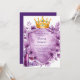 Este belo modelo de convite para casamento apresenta uma coroa ouro real adornada com joias ametistas, aninhada sobre um escudo heráldico embrulhado em ouro. Ao redor do design são lavandas exuberantes e peônias violetas, criando um luxuoso e vintage motif floral. Perfeito para casamentos românticos, reais ou celebrações elegantes com um toque de nobreza e encanto floral. A blindagem de vazio oferece espaço para nomes, datas ou mensagens personalizados.
