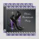 Calçados de salto alto, leopardo roxo e negro elegante e convite para festas de solteira de diamantes. Este belo convite de festa de solteira preto e roxo é facilmente personalizado para o seu evento. Observe que todos os adesivos, cartões e designs de convite que você encontrará no Zazzle são gráficos impressos sem joias reais, arcos, levantados, gravados, ou peças ou peças adicionadas.