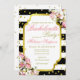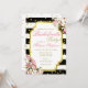 Convite moderno e elegante para festas de solteira com listras negras e brancas, rosas, hálito de bebê e fundo de confete dourado. Você pode personalizar o texto facilmente para qualquer ocasião. Consulte mais em zazzle.com/GlitterInvitations Nota: Este é um trabalho de arte de impressão gráfico e não há nenhuma falha.
