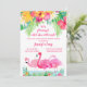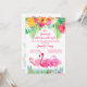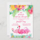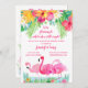 Festa de solteira fim de semana, o convite para fuga apresenta a cor d'água flamingos e flores tropicais. O convite pode ser personalizado para o evento clicando no botão personalizar na parte inferior da caixa de texto.