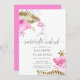Convites Festa de solteira Tropical Flamingo, rosa e Dourad