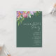 Este convite à festa de solteira verde floral tropical colorido é perfeito para a sua festa de solteira verde, roxa, pêssego, de destino moderno. Design apresenta um buquê elegante de verde-aquarela de praia clássico e flores, incluindo eucalipto verde-sábio, mauve e proteína vermelha, hibisco rosa-pincel, pássaro-laranja e azul do paraíso e folha de palma verde-escura. O design é ideal para um simples, criativo, único casamento de viagem para primavera, verão, outono ou inverno! Por favor, encontre outra papelaria de casamento no resto da coleção.
