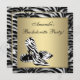 Fundo de zebra preto, branco e dourado e calçados de salto alto de zebra, convite de festa de solteira.