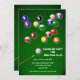Um convite perfeito para se adequar a qualquer festa de bilhar. O cartão é fácil de personalizar com sua redação, fonte, cor da fonte, opções de forma de papel e escolha de seis tipos de papel.