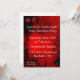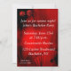 Um convite perfeito para festas de solteiro ou eventos de cassino. O design apresenta cartas de baralho, roleta e dados vermelhos em um fundo xadrez vermelho e preto desgastado. Os convites vêm com envelopes.