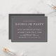 Este convite de festa de solteiro tem um estilo clássico simples com seu inserto cinza carvão sobre um fundo cinza mais escuro emoldurando seu texto personalizado. A paleta de cores neutras escuras tem apelo masculino. Personalize com os detalhes da sua festa de solteiro.