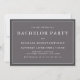 Este convite de festa de solteiro tem um estilo clássico simples com seu inserto cinza carvão sobre um fundo cinza mais escuro emoldurando seu texto personalizado. A paleta de cores neutras escuras tem apelo masculino. Personalize com os detalhes da sua festa de solteiro.