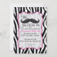 Convites Festa de Sonepover de Zebra Negra e Rosa