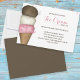 Esta design apresenta um sorvete de aquarela fofo social, um roteiro de caligrafia de na moda, uma comemoração branca festiva divertida, um cone de waffle de sorvete, um design mínimo simples e minimalista, uma igreja escolar que se junta, um chocolate branco cor-de-rosa, um cone de sorvete de sabor napolitano, uma festa de evento social de sorvete, convites sociais de sorvete