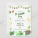 Juntem-se para uma Rua divertida. Ícones irlandeses de pequenas camrochas, um pote de ouro, ferradura, bandeira irlandesa e cerveja verde em uma função de efeito aquoso neste convite para fazer o feriado especial. O reverso tem um fundo com padrão de shamrock. Excelente para qualquer Rua. Dia de Patrick, festa de coquetel, ou aniversário. Disponível com produtos correspondentes. 🍀