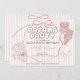 Convide as vítimas para uma festa de aniversário sonhadora! Este convite para crianças apresenta listras cor-de-rosa e brancas, um delicado arco rosa, perfeito para uma celebração noturna de meninas inspiradas em coquetes. Convidados podem chegar ao pijama mais bonito para uma noite de filmes, salgadinhos e risos. Um na moda e uma maneira divertida de celebrar na verdadeira moda do pijama!