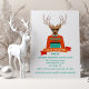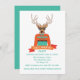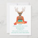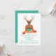 Convites de festas de Natal de Férias de Natal, Hipster e moderno e feio. Possui uma rena hipster com óculos, gravata de bolso e cores laranja, marrom e aqua divertidas.