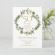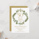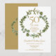 Com uma elegante guirlanda de folhagens da floresta, este convite de festa surpresa de aniversário de casamento de 50 anos pode ser personalizado com as suas informações especiais de aniversário de ouro. O verso apresenta uma guirlanda correspondente que enquadra as datas de aniversário em texto branco elegante sobre um fundo dourado. Concebido por Thisisnotme©