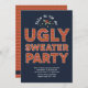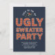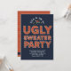 Convide familiares e amigos para uma festa de suéter U-G-L-Y com este convite festivo da PiPo Press. Este convite apresenta letras feitas de um padrão vermelho tricotado com um toque de erro num fundo marinho.