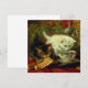 Cartão com a pintura a óleo de Henriëtte Ronner-Knip High Tea (1821-1909). Um gatinho branco e fofo bebe de um teacup e uma tábua borbulha uma massa numa bandeja de chá. Um presente perfeito para amantes de gatos e entusiastas do Romantismo.