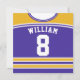 Entrevistas partidárias personalizadas feitas para crianças loucas de hóquei e adultos! Pode ser usado para aniversários, festas de taco ou bar mitzvah, noivado e aniversário, e muito mais! Personalize a parte traseira do convite com sua escolha de nome e número de camisa (idade). A frente do convite está no estilo de uma camisa de hóquei completa com colarinho e rendas. Para alterar as cores do texto e do plano de fundo e adicionar mais linhas de texto, role para baixo das caixas de texto à direita e clique em 'Clique para personalizar mais'. As cores desta camisa são roxas e douradas. Se você não vir o esquema de cores que deseja na minha loja, use o link 'Entre em contato com este Designer' abaixo e eu terei todo o prazer em ajudar.