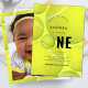 Comemore seu primeiro aniversário com este moderno convite de na moda, com bolas de tênis, fotos personalizadas e texto. Adicione facilmente seus próprios detalhes clicando na opção "personalizar".