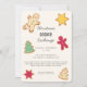 Troque seus biscoitos de Natal favoritos ou criações de pão de gengibre com amigos e familiares! Este moderno Convite de festas Holiday Cookie Swap apresenta ilustrações divertidas do gingerpão e todos os detalhes da festa. O patrocinador deste convite de troca de biscoitos de Natal mostra um padrão divertido de pão de gengibre.